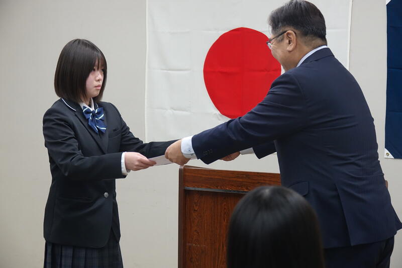 続いて、生徒会認証式では、先日実施された生徒会役員選挙結果役員に選出された5名の生徒が認証されました。